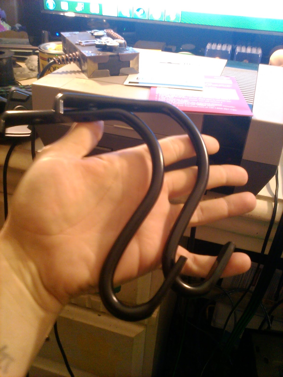 Then I looked around the room and tried to figure out where I was going to hang these things where 1. they are not going to get in the way. 2. they don't look out of place and pointless. And 3. where I could easily hid the wires in or behind something. My computer monitor was my best choice and to be completely honest I'm very glad I made that choice. These things look great hanging off my computer! However it did make me realize that new I need to make my monitor match some how in some way. Hmmm........ I wonder how I could do that? So stay tuned for my to rip that 27" TV apart and start fooling around with that too!! XD
